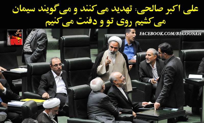 #بگونه: در جلسه یکشنبه 19مهر 94 مجلس ارتجاع و هنگام بررسی برجام، علی اکبر صالحی رئیس سازمان انرژی اتمی رژیم شدت تخاصم باندهای حکومتی را برملا کرد و گفت: باند رقیب او را تهدید به مرگ کرده است.