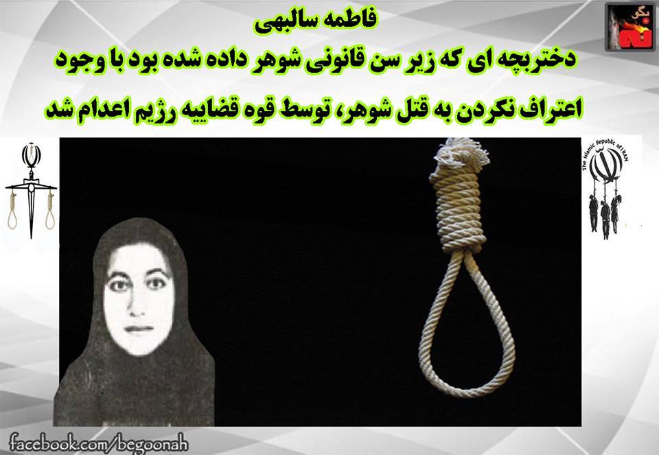 فاطمه سالبهی، دختربچه ای که زیر سن قانونی شوهر داده شده بود با وجود اعتراف نکردن به قتل شوهر، توسط قوه قضاییه رژیم اعدام شد