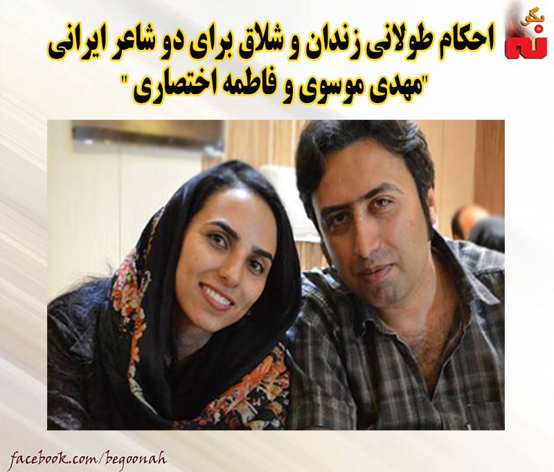 #بگونه : بیدادگاه رژیم دیکتاتور و فاشیستی خامنه ای، مهدی موسوی و فاطمه اختصاری، دو تن از سرایندگان «غزل پست مدرن» را به اتهام واهی «توهین به مقدسات» و «تبلیغ علیه نظام» به تحمل حبسهای طولانی و ۹۹ ضربه شلاق محکوم کرد.
