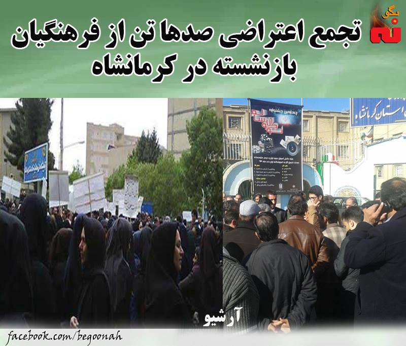 #بگونه : همزمان با تجمع اعتراضی فرهنگیان بازنشسته در تهران ،روز پنجشنبه ۲۳ مهر، صدها تن از معلمان بازنشسته در کرمانشا ه نیز در مقابل سازمان بازنشستگی ،تجمع اعتراضی برگزار کردند.