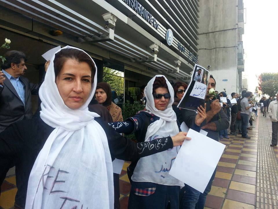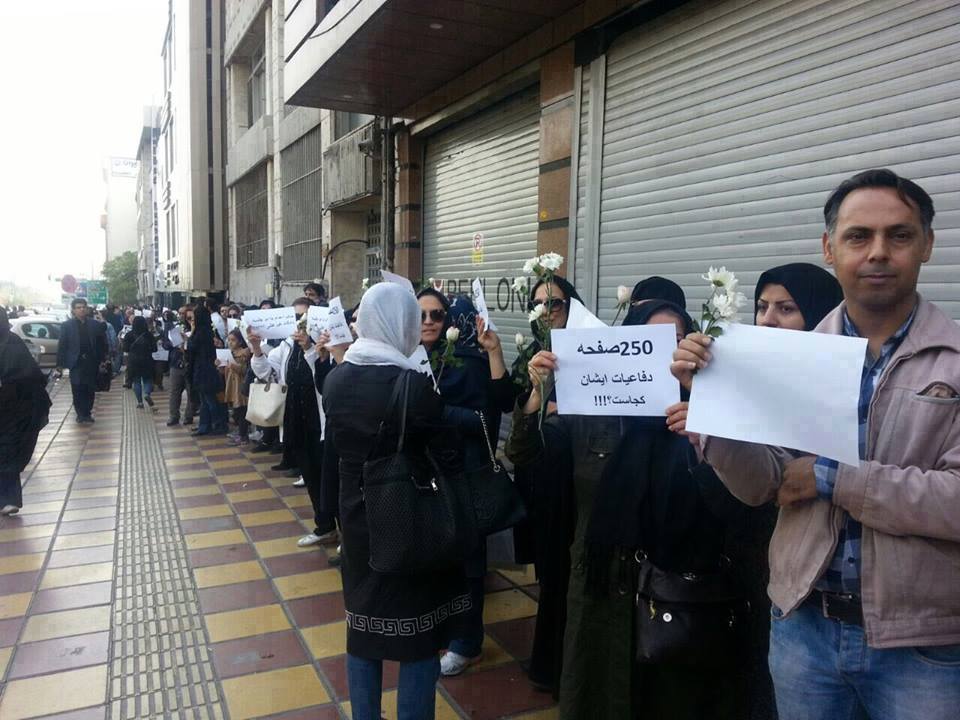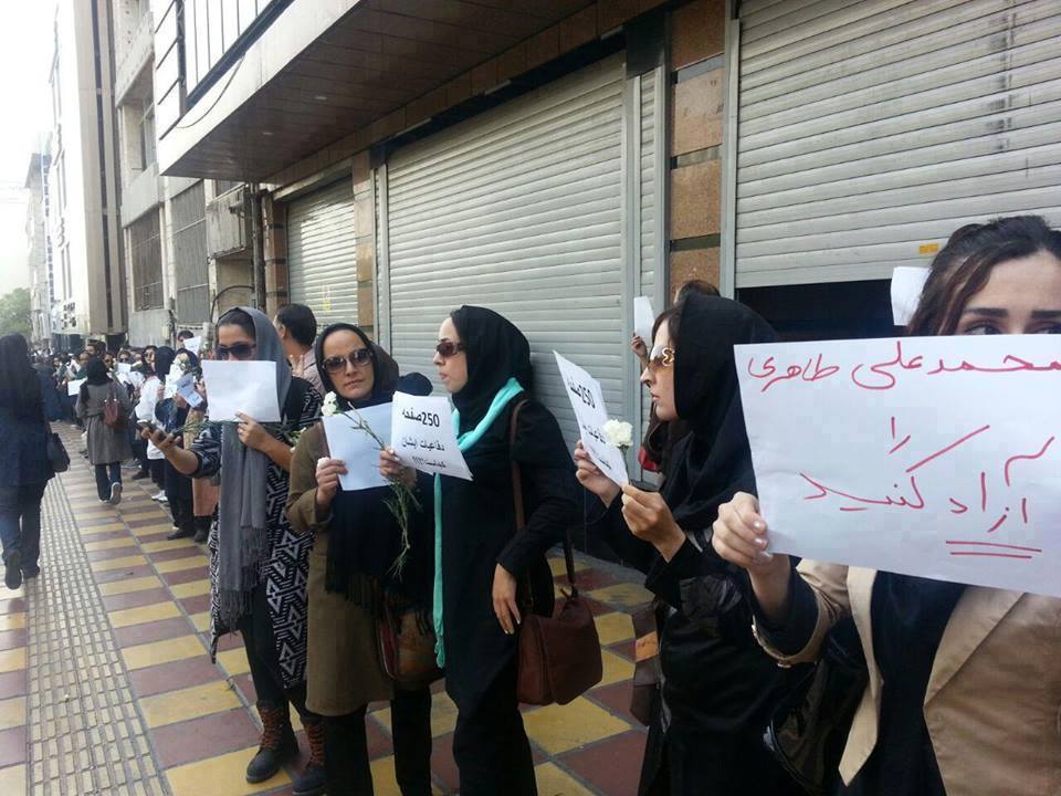 استاد طاهري، عدد ٦٨ و كلمه اعتصاب غذا را پاره ميكردند. هنگامیکه صف در ساعت ١١:٣٠ به خيابان آفريقا رسيد، ماموران مزدور سرکوبگر،ابتدا و انتهاي صف را بستند تا از گسترش تجمع جلوگیری شود.