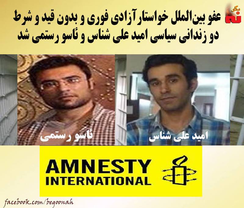 #بگونه : عفو بینالملل در بیانیهای ،خواستار آزادی فوری و بیقید و شرط دو زندانی سیاسی امید علی شناس و ئاسو رستمی شد.