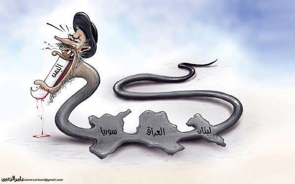 #بگونه: کاریکاتوری از وضعیت بغرنج در حال حاضر رژیم در منطقه. رژیمی که سالهاست تلاش می کند با ایجاد بحران در منطقه به حیات ننگینش ادامه دهد اما اینبار در یک اشتباه محاسبه بزرگ در یمن همچون ماری است که پس از بلعیدن عراق و لبنان و سوریه و گیرکردن یمن در گلو، راه نفس بر او بسته شده و در حال خفگی و مرگ حیات پلیدش می باشد.