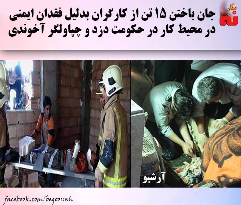 جان باختن ۱۵ تن از کارگران بدلیل فقدان ایمنی در محیط کار در حکومت دزد و چپاولگر آخوندی