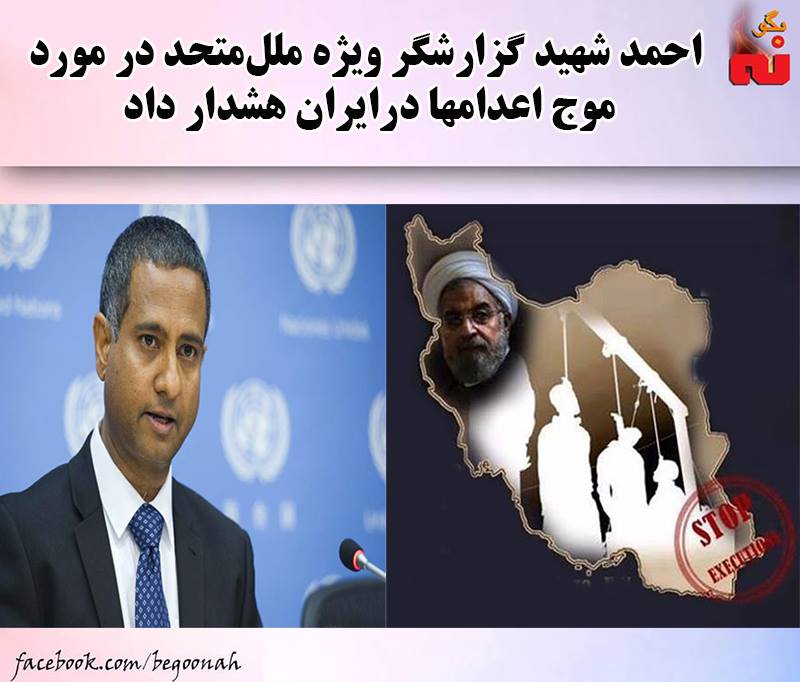 #بگونه : احمد شهید گزارشگر ویژه مللمتحد در امور ایران،روزدوشنبه چهارم آبان، نسبت به افزایش ۲۵درصدی اعدامها در ایران هشدار داد.