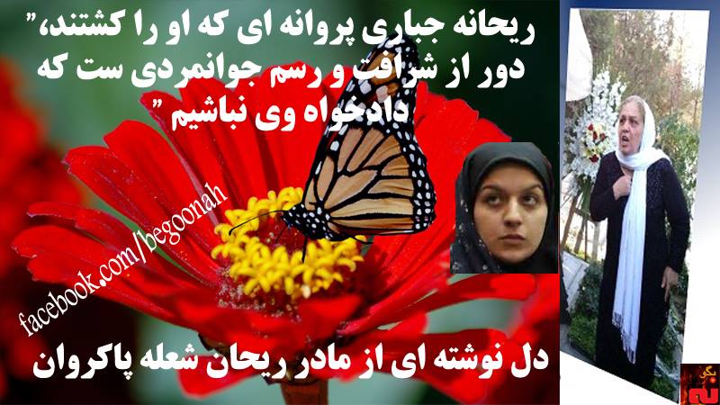 ريحانه جباري پروانه اي كه او را كشتند”، دور از شرافت و رسم جوانمردی ست که دادخواه وی نباشیم ”