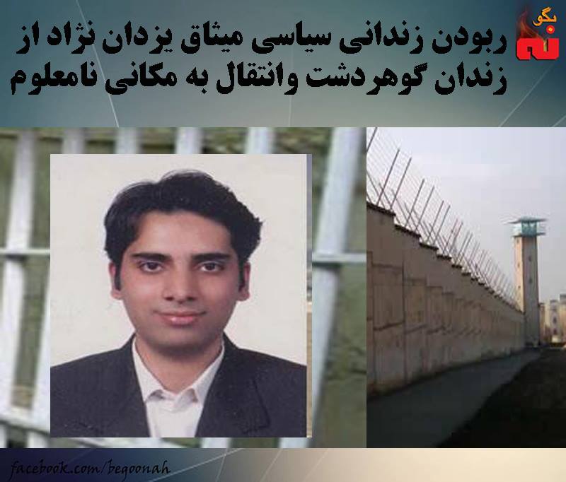 ربودن زندانی سیاسی میثاق یزدان نژاد از زندان گوهردشت وانتقال به مکانی نامعلوم