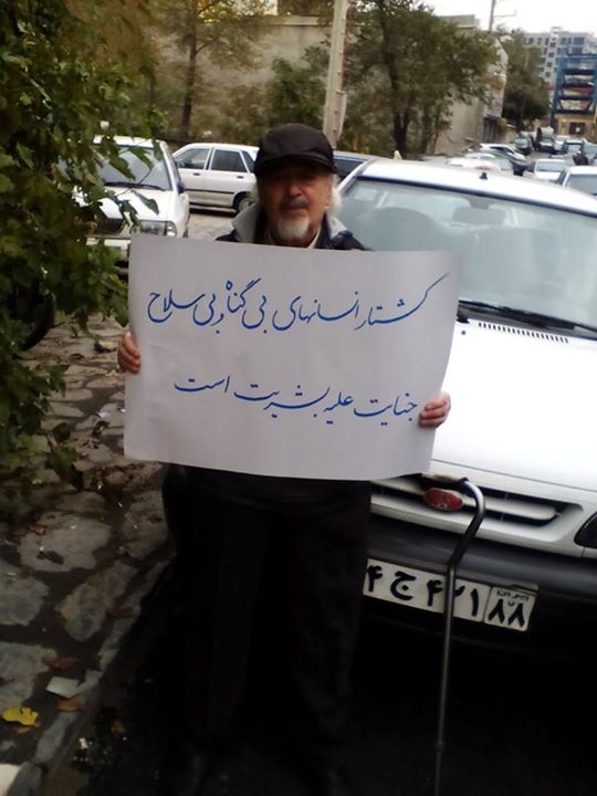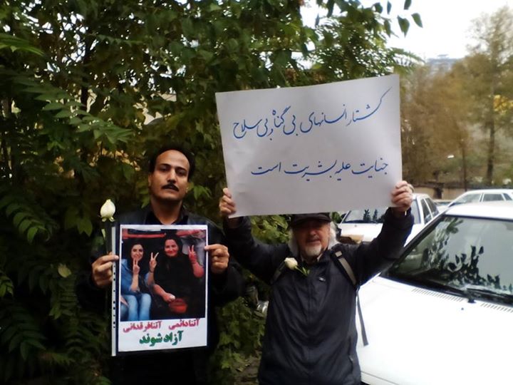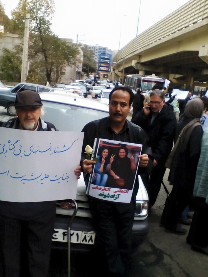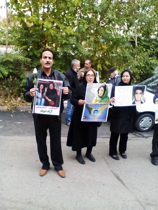 #بگونه: در اين تجمع اعتراضی به تاريخ 16آبان94 خانواده های زندانیان و فعالان سیاسی و مدنی مقابل زندان اوین برای آزادی زندانیان سیاسی و عقیدتی كشتار بي گناهان بي سلاح و بي دفاع در كمپ ليبرتي را محكوم كردند .