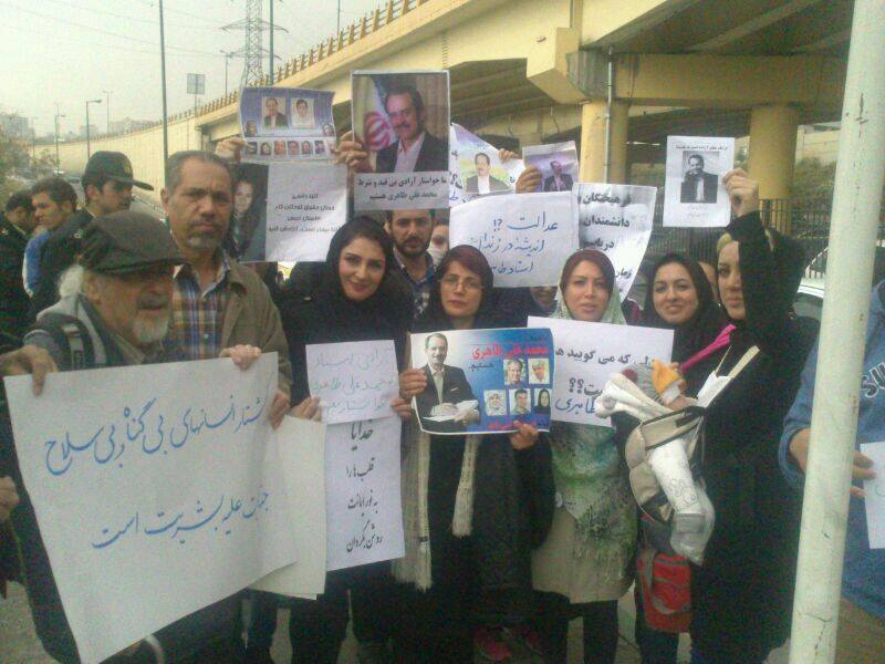 اعتراض به موشك باران كمپ ليبرتي در تجمع خانوداه هاي زندانيان سياسي و فعالين سياسي مدني مقابل زندان اوين +عکس