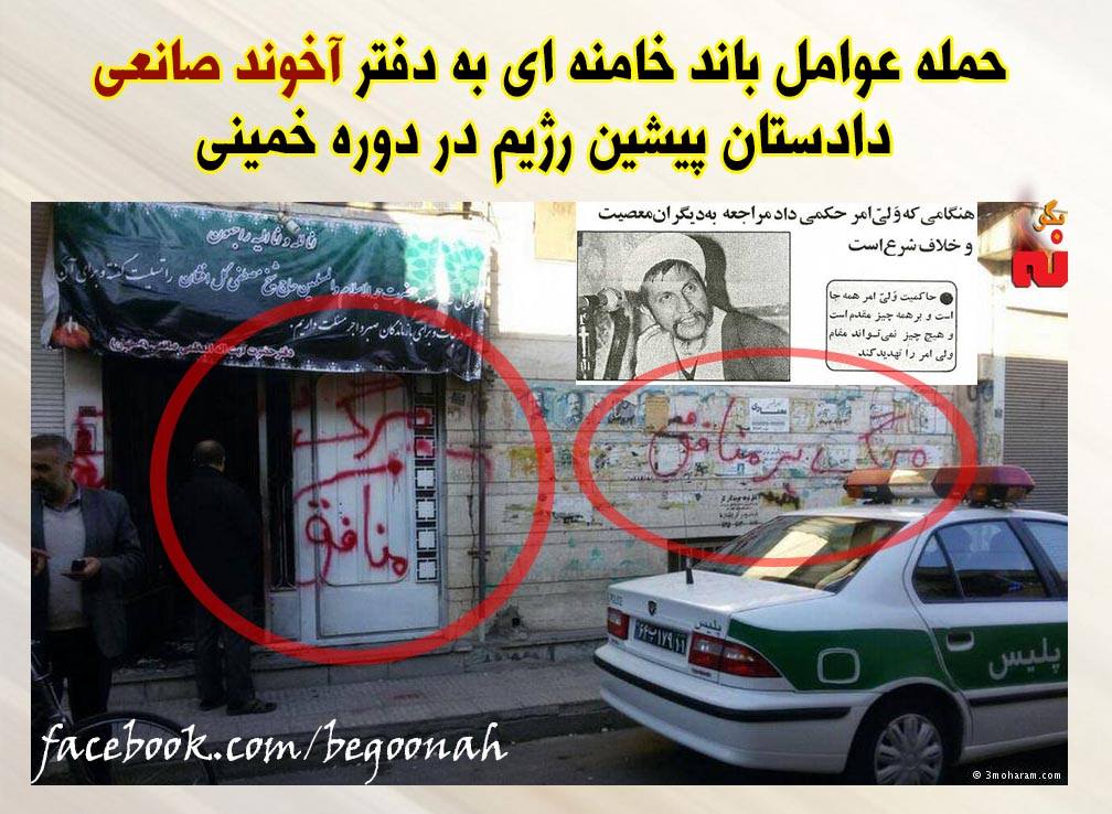 حمله عوامل باند خامنه اي به دفتر آخوند صانعی دادستان پيشين رژيم در دوره خمينی