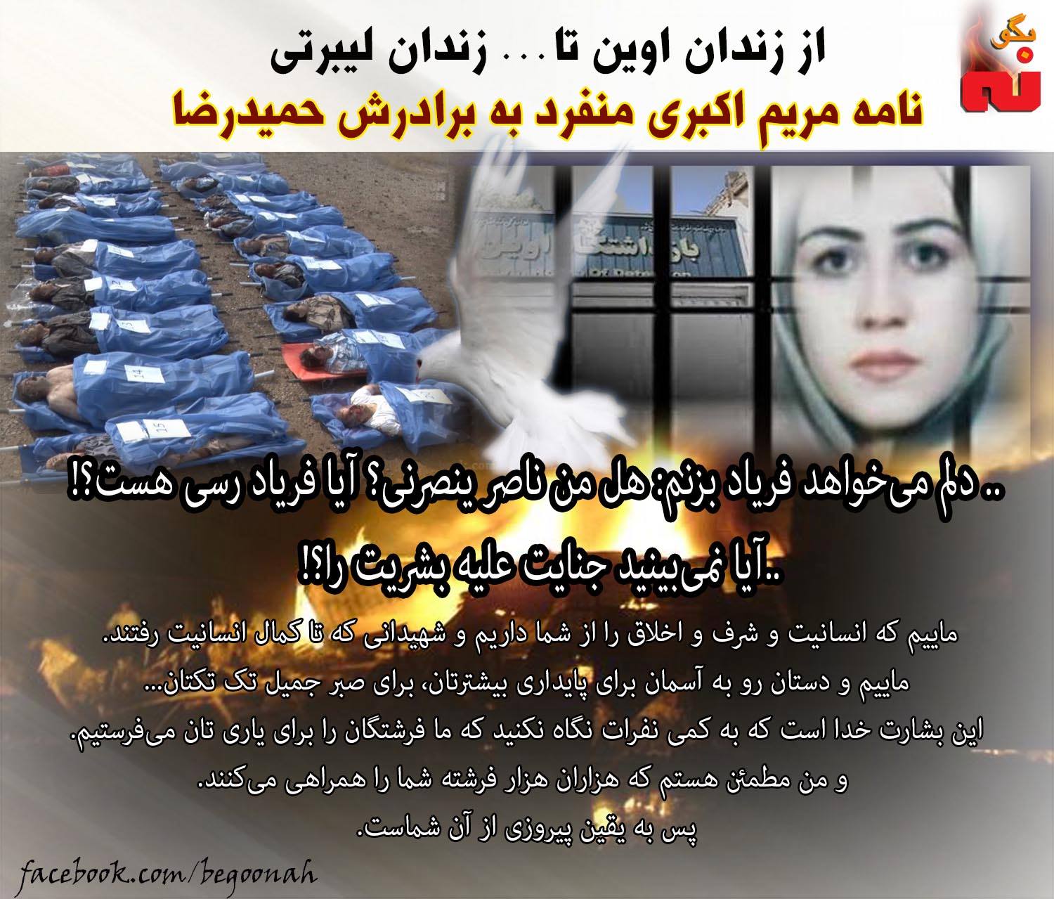 نامه مریم اکبری منفرد از زندان اوین به برادرش در عراق :