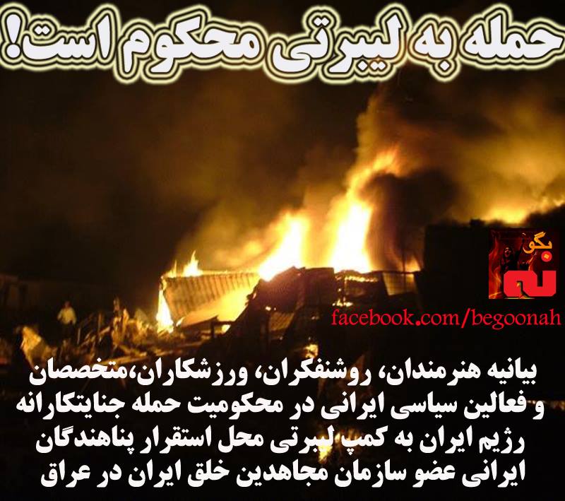 بيانيه هنرمندان، روشنفكران، ورزشكاران،متخصصان و فعالين سياسي ايراني در محكوميت حمله جنايتكارانه رژيم ايران به كمپ ليبرتي محل استقرار پناهندگان ايراني عضو سازمان مجاهدين خلق ايران در عراق