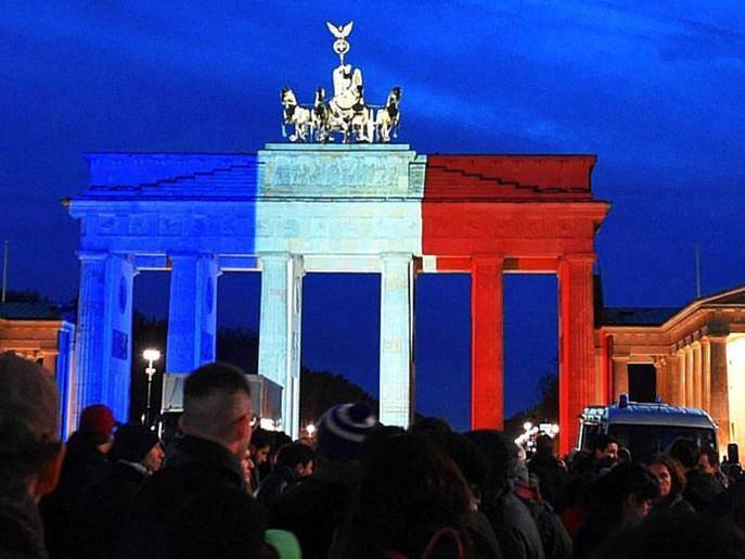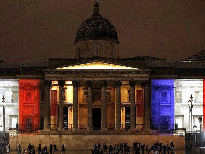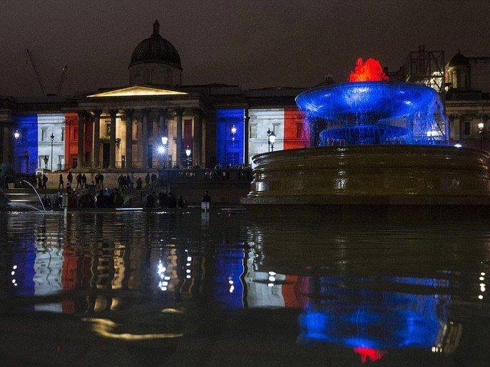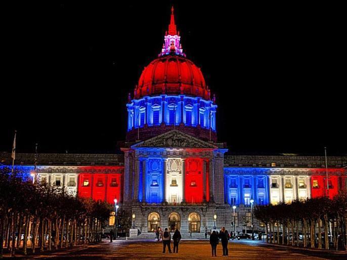 از شانگهای در چین تا سانفرانسیسکو در آمریکا، ساختمانهای معروف این شهرها شنبه شب به رنگ پرچم سه رنگ فرانسه با نورهای آبی، سفید و سرخ تزیین شدند.