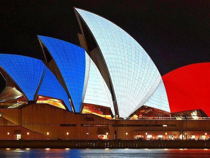 #بگونه :نمادهای شهری در گوشه و کنار جهان در همدردی با فرانسه وخانواده های قربانیان بی گناه شهر پاریس که در حمله تروریستی کشته شدند به رنگ پرچم فرانسه نورافشانی شد.