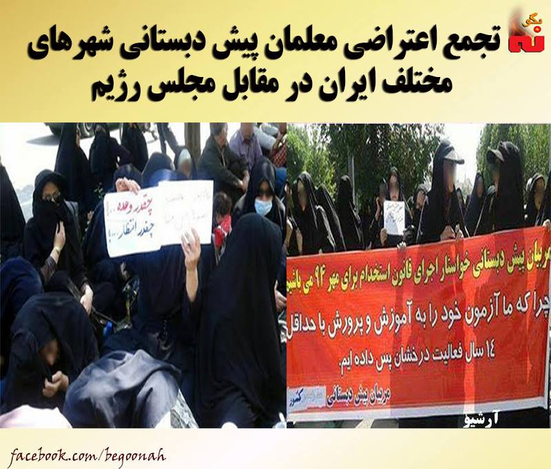 معلمان زحمتکش پیش دبستانی بارها و بارها در گرما و سرما مقابل مجلس رژیم تجمع کرده و حق و حقوق خود را خواستار شده اند معلمان اعلام کرده اند که تا تحقق خواستههای شان دست از اعتراض بر نخواهند داشت.