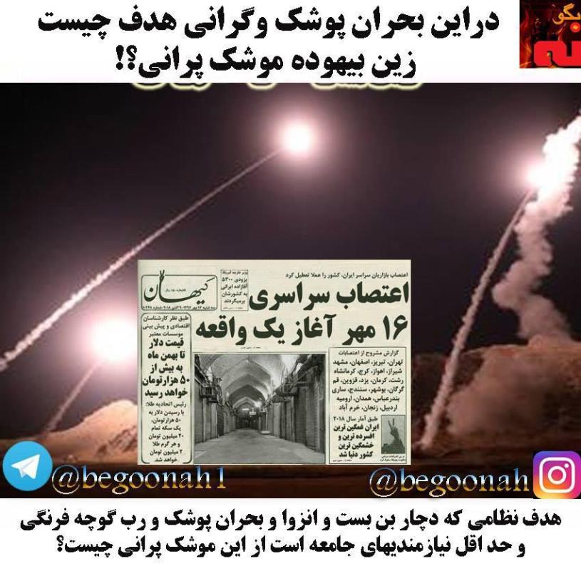 هدف نظامی که دچار بن بست و انزوا و بحران پوشک و رب گوچه فرنگی و حد اقل نیازمندیهای جامعه است از این موشک پرانی چیست؟