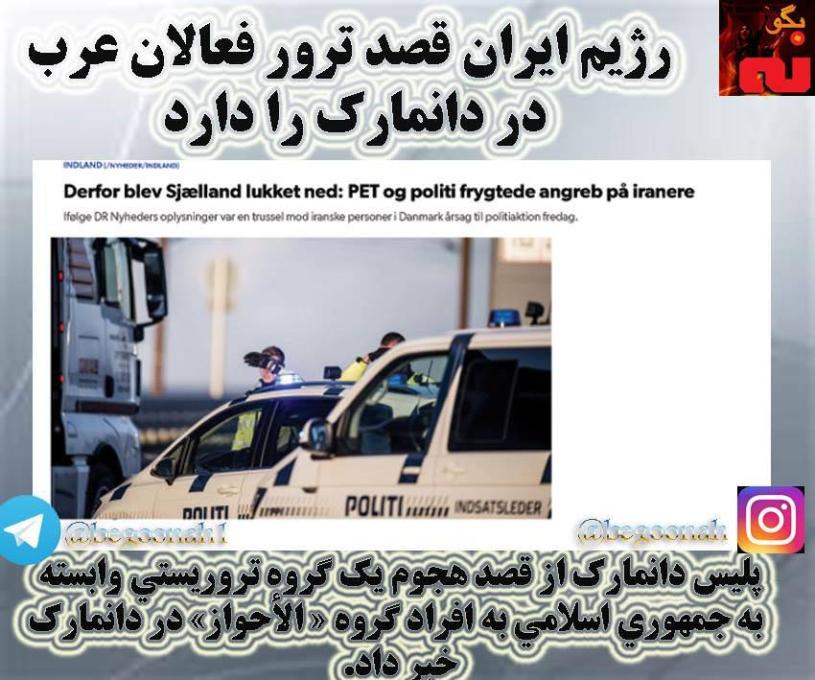 بگونه: بنابه خبر وب سایت تلویزیون دانمارک پليس دانمارك از قصد هجوم یک گروه تروريستى وابسته به جمهورى اسلامى به افراد گروه « الأحواز» در دانمارك خبر داد.
