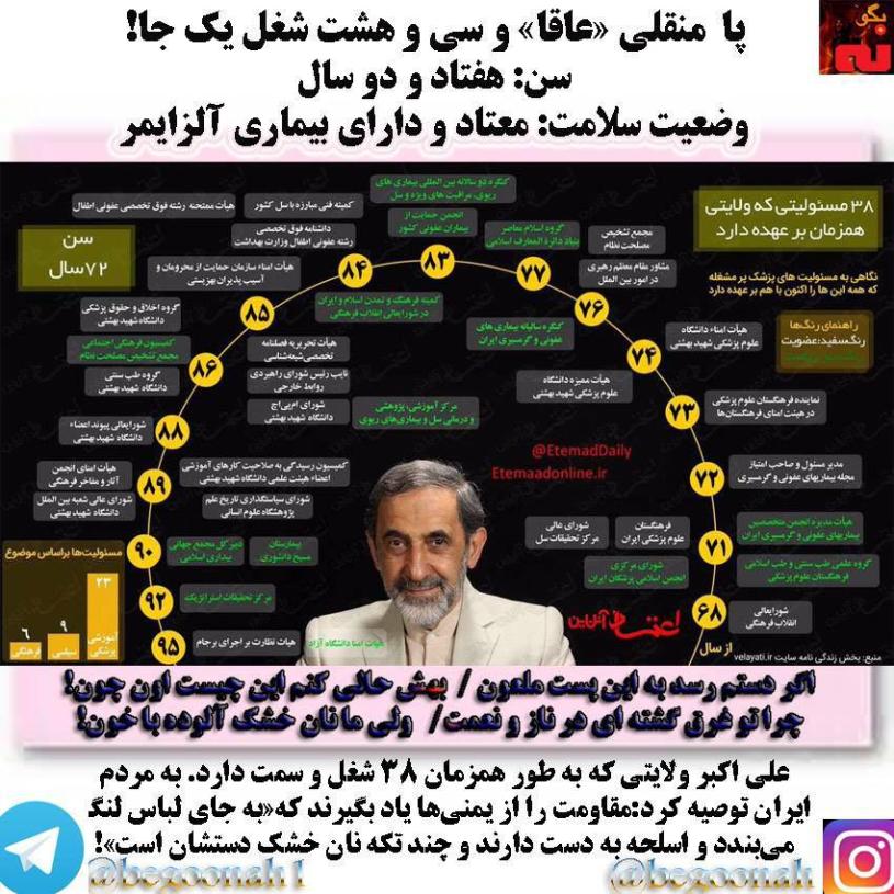 گالری فیلم و تصویر, اجتماعی, تحلیل سیاسی روز, رویدادها علی اکبر ولایتی که به طور همزمان ۳۸ شغل و سمت دارد به مردم ایران توصیه کرد:مقاومت را از یمنیها یاد بگیرند که«به جای لباس لنگ میبندند و اسلحه به دست دارند و چند تکه نان خشک دستشان است»! Date: اکتبر 5, 2018Author: begoonah 0 دیدگاه #براندازم #اعتصابات_سراسری https://t.me/begoonah1 https://www.instagram.com/begoonah اشتراکگذاری این:بیشتر به اشتراک گذاشتن در فیسبوک (در پنجرۀ تازه باز میشود) فیسبوک اشتراکگذاری در X (در پنجرۀ تازه باز میشود) X چاپ (در پنجرۀ تازه باز میشود) چاپ اشتراکگذاری در تلگرام (در پنجرۀ تازه باز میشود) تلگرام اشتراکگذاری در واتساپ (در پنجرۀ تازه باز میشود) واتساپ
