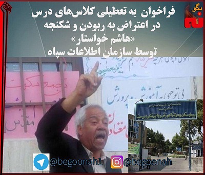 لذا ما تشکل کوچکی از فرزندان ایران، «مخلصانه»، از شما بزرگواران تقاضا میکنیم که، با تعطیلی کلاسها و مدارس، و اعلام اعتصاب سراسری، با هدف «آزادی بیقید و شرط آقای هاشم خواستار»، و جلوگیری از این اقدام سرکوبگرانه، و نیز حذف خونین آموزگاران جسور و