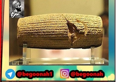 «منم کوروش، شاه دادگر. ارتش بزرگ من به آرامی به بابل درآمد. نگذاشتم رنج و آزاری به مردم این سرزمین برسد. من همه شهرهای ویرانشده را از نو ساختم. همه یوغهای ننگین بردگی را از مردمان بابل برداشتم. خانههای ویران شدهشان را آباد کردم. به تیرهبختیهای این مردم پایان دادم».