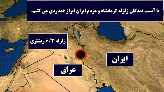 «از شنیدن خبر وقوع زلزله درغرب ایران متاسف شدیم وبا آسیب دیدگان این زلزله و مردم ایران ابراز همدردی میکنیم. شایان ذکراست تحریمهای ایالات متحده علیه رژیم ایران شامل کمکهای انساندوستانه نمیشود وچندین سازمان غیردولتی آمریکایی مجوز ارسال کمک های انساندوستانه به ایران را دراختیاردارند.