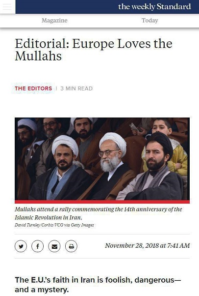 ویکلی استاندارد:اعتماد اتحادیه اروپا به رژیم ایران،احمقانه،خطرناک و یک معماست