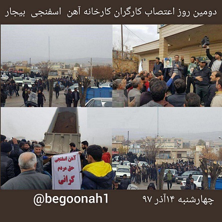 روز چهارشنبه ۱۴ آذر ۹۷ کارگران کارخانه آهن اسفنجی کرانی بیجار در اعتراض به انتقال این کارخانه برای دومین روز اعتصاب کردند.