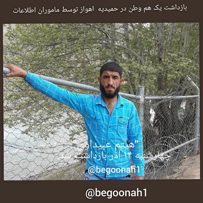 «هيثم عبيداوى» فرزند محمد از اهالى شهر حميديه ساعت ۸:۳۰صبح روز چهارشنبه 1۱۴ آذرماه 1۱۳۹۷توسط اداره اطلاعات بازداشت شد.