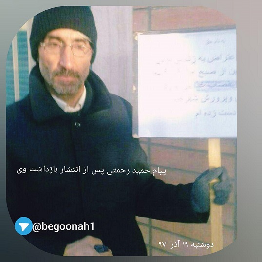 بنده حمید رحمتی از دیروز صبح که با احترام بسیار از درب منزل به کلانتری برده شدم به دلیل توقیف گوشی خودم (گوشی عادی بود و اندروید نبود) و لپ تاپم و گوشی خانمم تا این لحظه که با این شماره وارد محیط شدم هیچگونه ارتباطی با محیط مجازی نداشتم