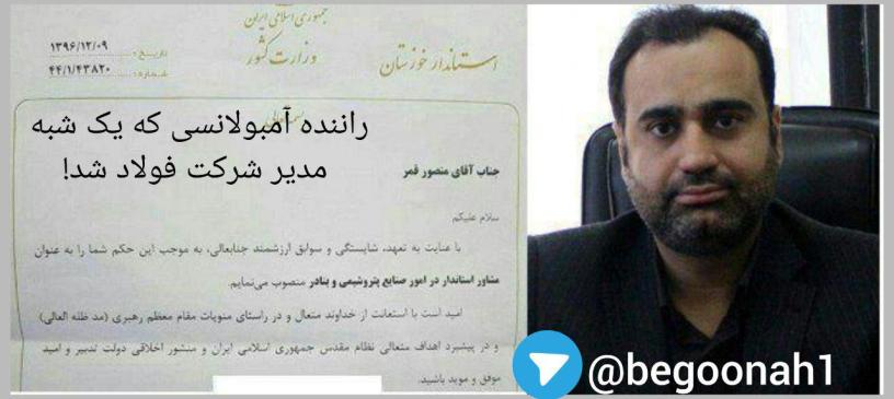 مهدی قمر فرزند «منصور قمر» مشاور استاندار خوزستان در امور صنایع و پتروشیمی ها چندی پیش مدیر روابط عمومی فولاد اکسین خوزستان شد.