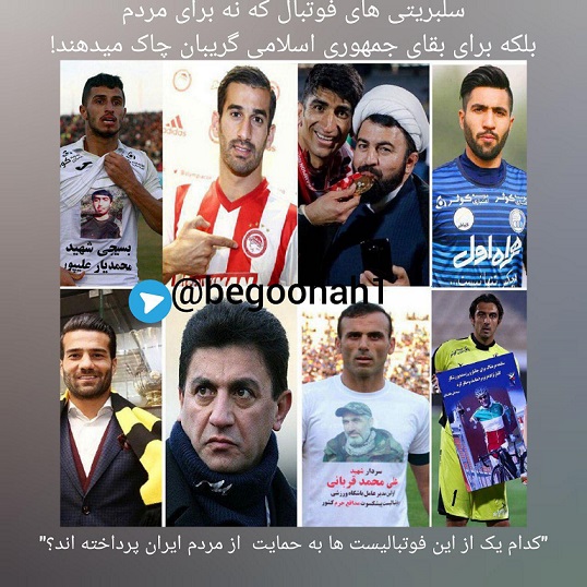 همه ما از ارقام قراردهای میلیاردی که فوتبالیستها دریافت می کنند با خبریم. آنها بخاطر چند ساعت بازی کردن و نشستن روی نیمکت های ذخیره مبالغ کلان دریافت میکنند و در برابر ظلم و جنایت رژیم حاکم بر ایران خاموشند. ای کاش فقط خاموش بودند. بارها دیده ایم که با بهانه های مختلف از سیاستهای این رژیم حمایت می کنند و تیغ سرکوب را علیه مردم تیز می کنند.