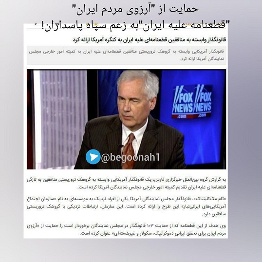 «یک قانونگذار آمریکایی وابسته به مجاهدین، با تازگی قطعنامهای علیه ایران ارائه کرده است!