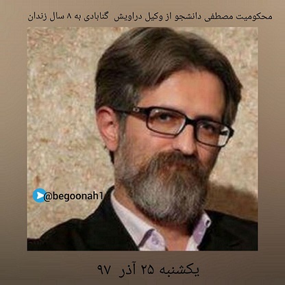 مصطفی دانشجو، وکیل دادگستری و از درویشان گنابادی محبوس در زندان اوین، از سوی شعبه ۲۸بیدادگاه به احکام زندان محکوم شد.
