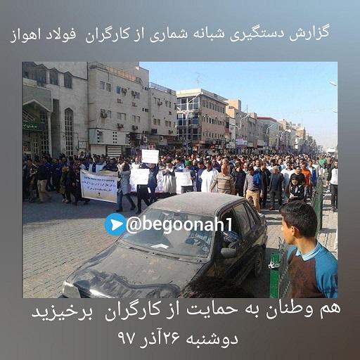گزارش اتحادیه آزاد کارگران در باره بازداشتهای شبانه و گسترده کارگران گروه ملی صنعتی فولاد اهواز، بنابه این گزارش علاوه بر حضور مسئولین گارد ویژه و رئیس پاسگاه انتظامی غرب اهواز در دقایق اولیه صبح امروز در این مجتمع صنعتی و تهدید کارگران به بازداشتهای بیشتر در صورت برگزاری تجمع، همین الان نیروهای گارد ویژه بطور بسیار گسترده ای مقابل استانداری و دادگستری خوزستان همراه با آمبولانس و ماشینهای آب پاش مستقر شده اند تا مانع شکل گیری تجمع کارگران گروه ملی صنعتی فولاد اهواز شوند.