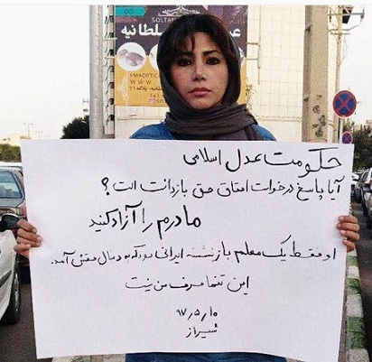 افسانه رضایی جرمش حمایت از مادر معلمش می باشد که در جریان تجمع معلمان و فرهنگیان در مردادماه در شیراز با بدست گرفتن بنری خواهان آزادی وی شده بود. وی مدتی به همین خاطر در بازدداشت به سر میبرد و امروز جنایتکاران خامنه ای وی را برای تحمل شش ماه حبس به زندان عادل آباد شیراز منتقل کردند.