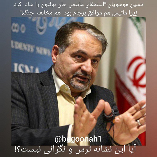 «استعفای ژنرال متیس، جان بولتون را شاد کرد. زیرا ماتیس هم موافق برجام بود و هم مخالف جنگ!