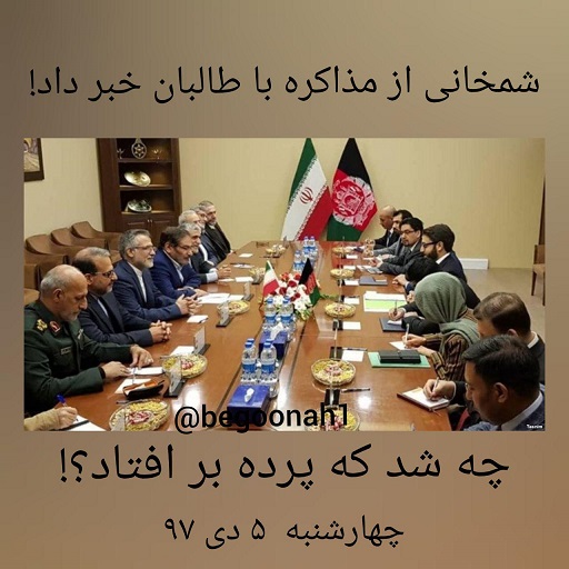 خبرگزاری تسنیم، وابسته به نیروی تروریستی قدس امروز چهارشنبه ۵ دی ۹۷ از مذاکره علی شمخانی دبیر شورای امنیت رژیم با گروه طالبان و تداوم این مذاکرات خبر داد.