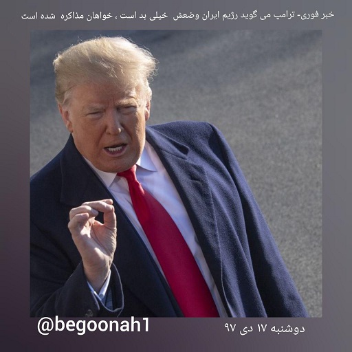 رئیس جمهور امریکا این خبر را روز یکشنبه ۱۶ دی ۹۷ در گفتگوی کوتاهی که با خبرنگاران داشت در پاسخ به «پرسش در باره ایران اعلام کرد و گفت: آنها وضعیت خوبی ندارند و می خواهند گفتگو کنند.»