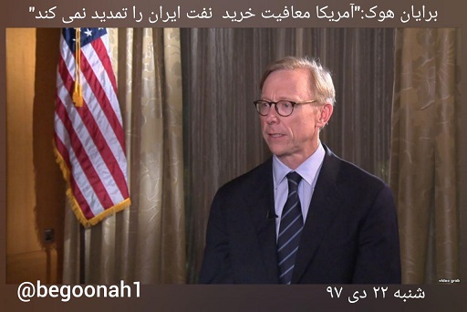 به گزارش خبرگزاری رویترز برایان هوک نماینده ویژه وزارت خارجه آمریکا در امور ایران امروزشنبه ۲۲ دی ۹۷ در سخنرانی خود در یک همایش صنعتی در ابوظبی تاکید کرد: «ما دیگر هیچگونه استثنا یا معافیت برای واردات نفت از ایران قائل نمی شویم.»