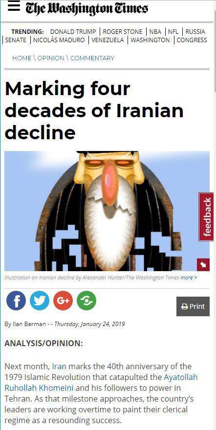 در چهار دهه گذشته ،رژیم ایران یك سقوط شتابان را بلحاظ داخلی و موقعیت جهانی تجربه كرده است. بر اساس گزارش بانک جهانی، تولید ناخالص داخلی سرانه در ایران از اواسط دهه ۱۹۷۰ به بیش از ۳۰درصد کاهش یافته است. قدرت خرید ریال ، سقوط شدید كرده.آمار نشان می دهد که اقتصاد ایران در چهار دهه از رده ۱۷دنیا به ۲۷در جهان رسیده است. فساد و سوء استفاده مالی عظیم ،بطور ظالمانهای حاكمان رژیم را ثروتمند كرده است. برای بیش از یک سال است که رژیم ایران با تظاهرات مردمی مستمر و بی سابقه ای روبروست.