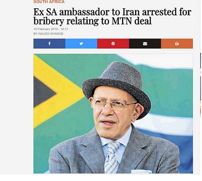 یوسف سالوجی سفیر سابق آفریقای جنوبی در ارتباط با اتهامات دریافت رشوه به میزان ۱۰۰ هزار دلار برای کمک به شرکت «امتیان» برای کار در ایران دستگیر شده است.
