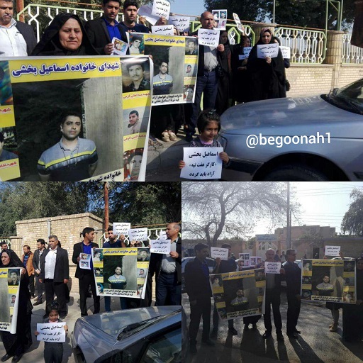 خانواده اسماعیل بخشی و جمعی از کارگران که امروز در مقابل دادگستری شوش تجمع کرده بودند، خواستار آزادی فوری اسماعیل بخشی ، شده اند.