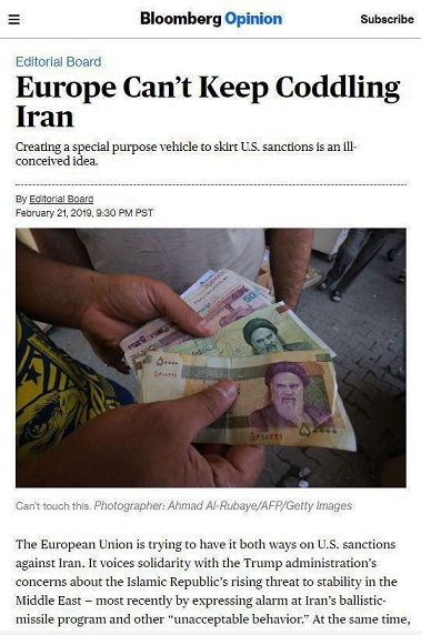 بلومبرگ:اروپا نمی تواند به نوازش رژیم ایران ادامه دهد و ترامپ را فریب دهد