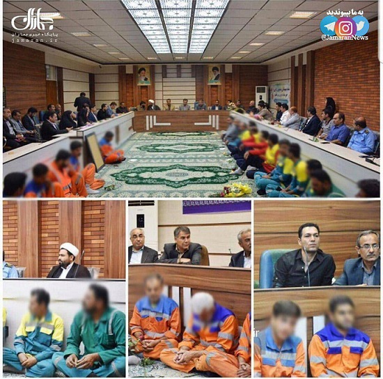 روز شنبه ۲۵ اسفند ۹۷ در مراسم بزرگداشت روز شهردار و تجلیل از شهردار برازجان در استان بوشهر که با حضور جمعی از کارگزاران حکومتی و پرسنل شهرداری برازجان برگزار شد، دست اندرکاران برنامه کارگران و پاکبانان را روی زمین و کارگزاران چپاولگر را بر صندلی نشاندند.