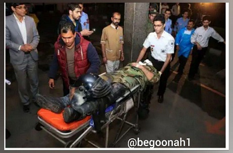 جوانان و مردم این مامور سرکوبگر را مورد اصابت مواد محترقه قرار دادند و وی از ناحیه پاشنه پای راست به شدت مصدوم گردید.