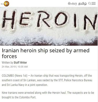 یک روزنامه سریلانکایی گزارش کرد که ارزش این محموله هروئین رژیم ایران بیش از یک میلیارد روپیه این کشور برآوردشده است.