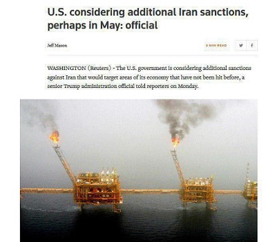 یک مقام مسئول بلندپایه در دولت آمریکا دوشنبه ۱ آوریل به خبرنگاران گفت که واشینگتن در حال بررسی اعمال تحریمهای بیشتر علیه بخشهای جدیدی در اقتصاد ایران است.