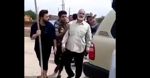 فرمانده قرارگاه کربلای سپاه جنایت و چپاول پاسداران در جنوب هنگام بازدید نمایشی و تبلیغاتی از مناطق سیل زده مورد خشم و اعتراض هموطنان سیل زده که قربانیان جنایت سپاه پاسداران هستند قرار گرفت و فرار را بر قرار ترجیح داد.