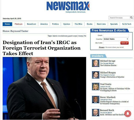 پروفسور ریموند تنتر عضو پیشین شورای امنیت ملی آمریکا طی مقاله یی که در «نیوزمکس» درج شده نوشت: نام گذاری سپاه پاسداران به عنوان یک سازمان تروریستی خارجی ادامه سیاست دونالد ترامپ، با تمرکز بر تحریم های اقتصادی علیه رژیم ایران است . تحریمها اکنون به حیاتی ترین نهاد اقتصادی رژیم ایران ،یعنی سپاه پاسداران آسیب خواهد رساند. اضافه کردن نام سپاه پاسداران در لیست سازمانهای تروریستی خارجی، روحیه پرسنل سپاه پاسداران و نیروهای نیابتی سپاه را ضعیف می کند و باعث تقویت روحیه مردم ایران می شود که برای اعترا ض به فساد و سرکو ب سپاه پاسداران به خیابان ها رفته اند.