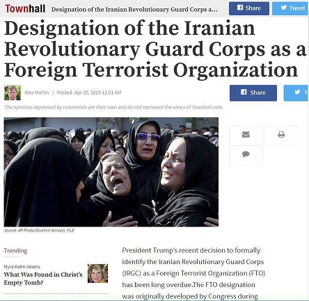 سرهنگ وسلی مارتین افسر ارشد سابق ضدتروریسم نیروهای ائتلاف در عراق در مقاله یی که در نشریه تاون هال درج شده نامگذاری سپاه پاسداران را بسیار دیرهنگام دانست و نوشت: سپاه پاسداران یک باند مافیایی است، که به اصلیترین کشور حامی تروریسم بین المللی خدمت می کند. سپاه پاسداران بخش بزرگی از اقتصاد ایران را کنترل می کند و حزب الله لبنان و سایر سازمان هایی که مصمم به حمله و تخریب دولت ها در سراسر جهان هستند را از نظر مالی تامین می کند . فلسفه وجودی سپاه پاسداران انجام وظایفی است که ارتش قادر به انجام آنها نیست تا هیچ اپوزیسیون سیاسی نتواند برای سرنگونی این رژیم سرکوبگر، قیام کند.